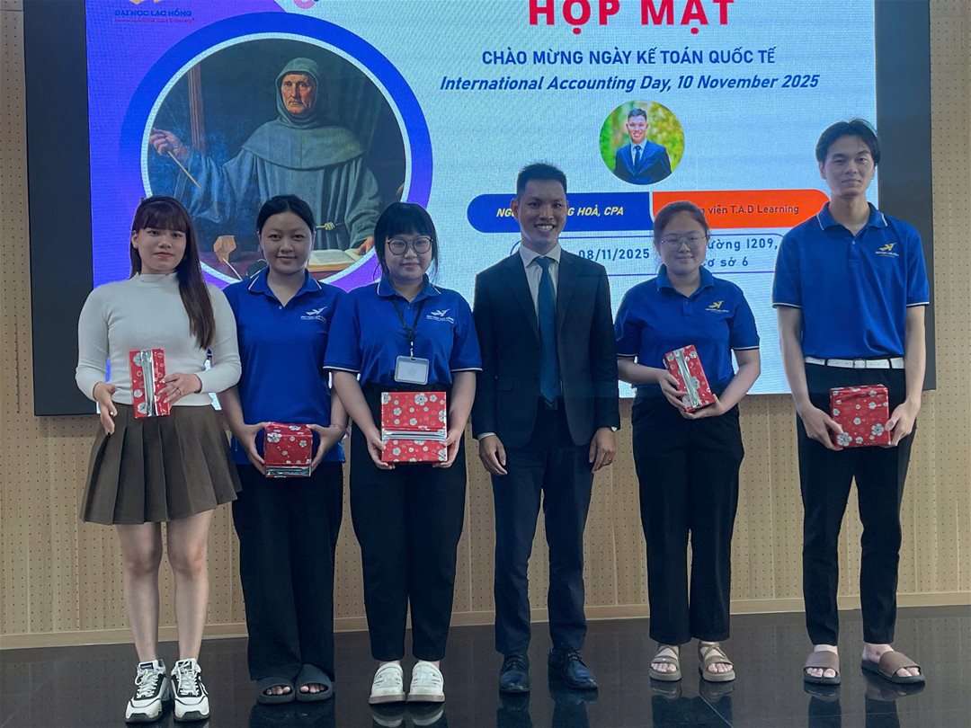 Trong chương trình, giảng viên – sinh viên đã cùng nhau ôn lại lịch sử ngành kế toán từ thời Luca Pacioli (1445–1517), người được mệnh danh là "Cha đẻ của kế toán hiện đại", đến xu thế kế toán số với ứng dụng công nghệ, phần mềm ERP, AI và Big Data trong kiểm soát và ra quyết định tài chính.