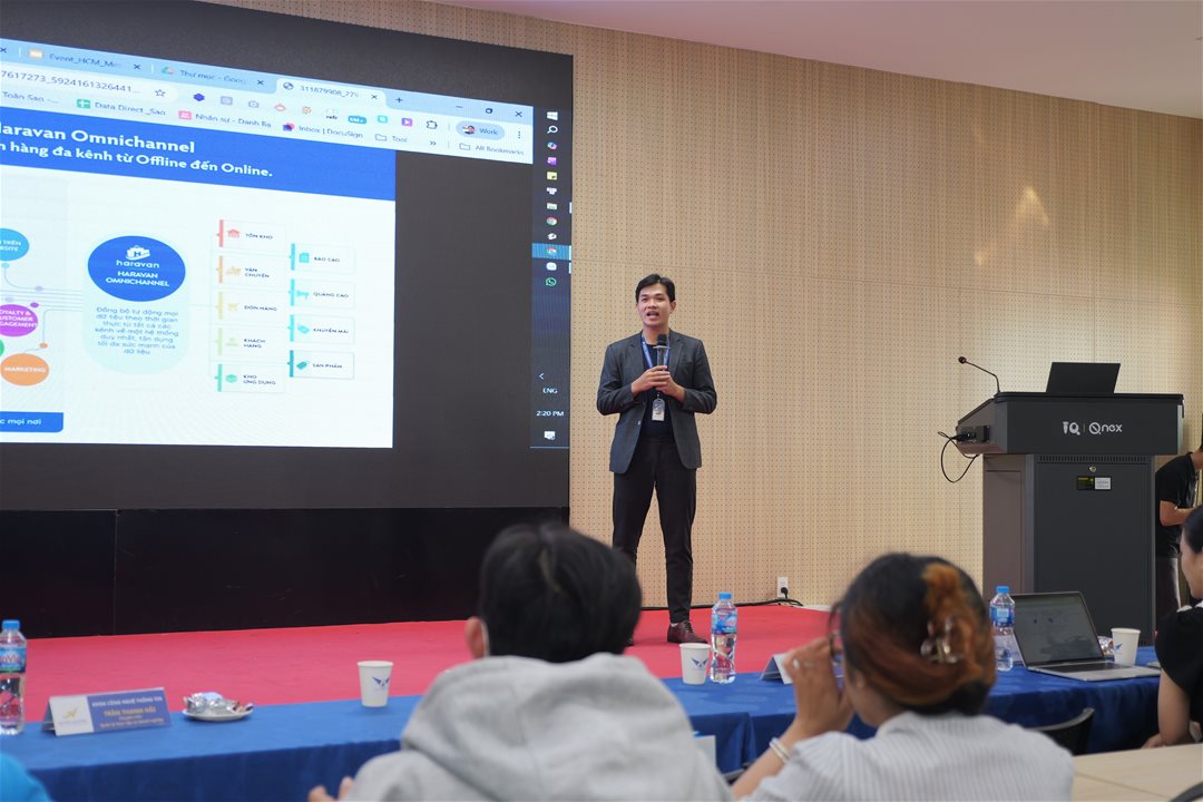 Speaker Nguyen Toan Sao, a training expert from Haravan, presented real-life stories, lessons learned, and trends in technology application within Vietnam's e-commerce sector.